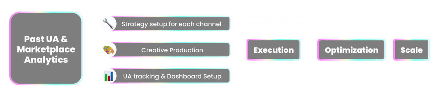 Scaled UA across Meta Ads, Google Ads, TikTok Ads, Snap Ads, & Apple Ads to $2.5M/month spend while consistently exceeding ROAS targets.
