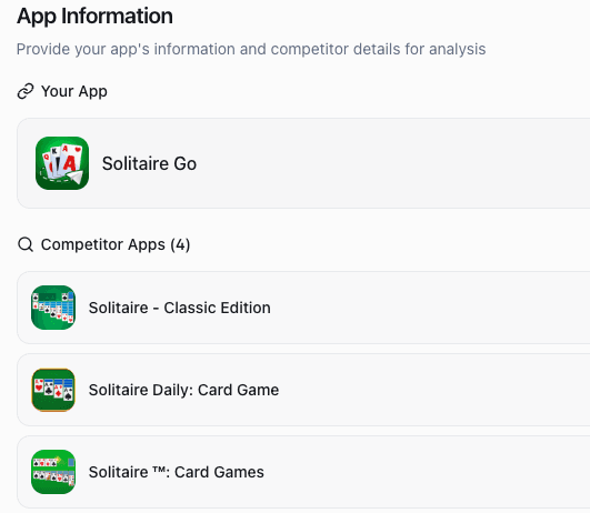 Simply select your app, competitors, country, and OS — your ASO Agent handles the rest. AI completes deep keyword research and auto-generates high-impact metadata variations in minutes, eliminating hours of manual research and rewriting.